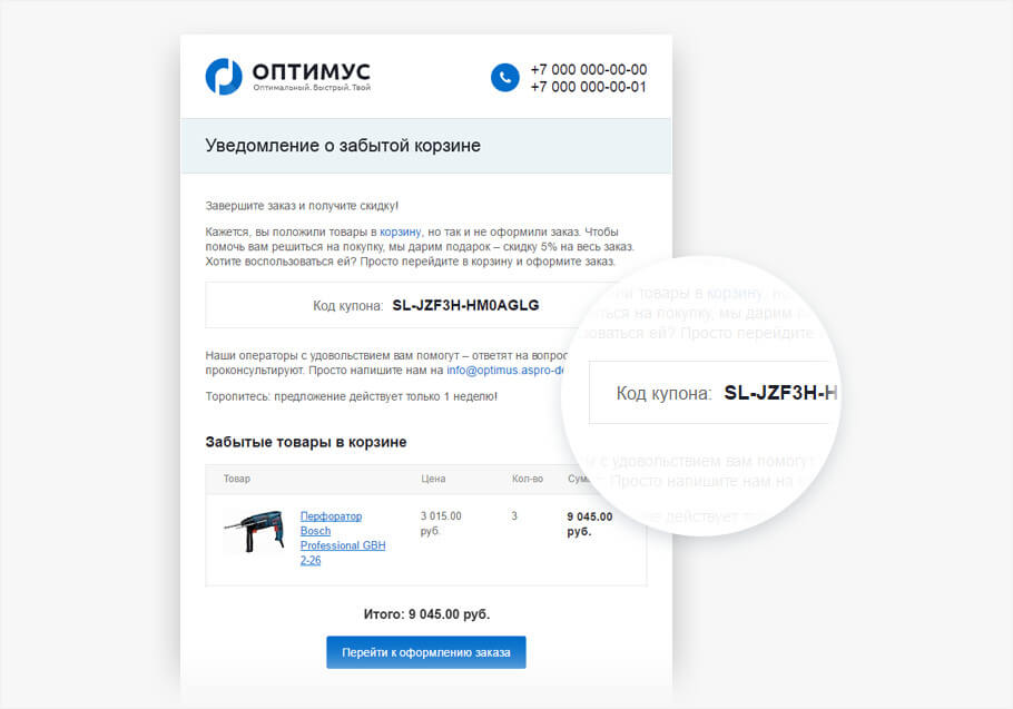 В среднем 70% заказов остаются неоформленными. По данным SeeWhy, 55,8% клиентов возвращаются из покупки из электронных писем. Конверсия в покупки при этом может достигать 67,7%. Что делать? Рассылать письма тем, кто бросил корзины на этапе оформления заказа. Такие уведомления — как котенок, который просится вам под дверь: устоять невозможно. Хотите, чтобы конверсия была еще выше? Используйте механику уведомления о забытой корзине с купоном на скидку.